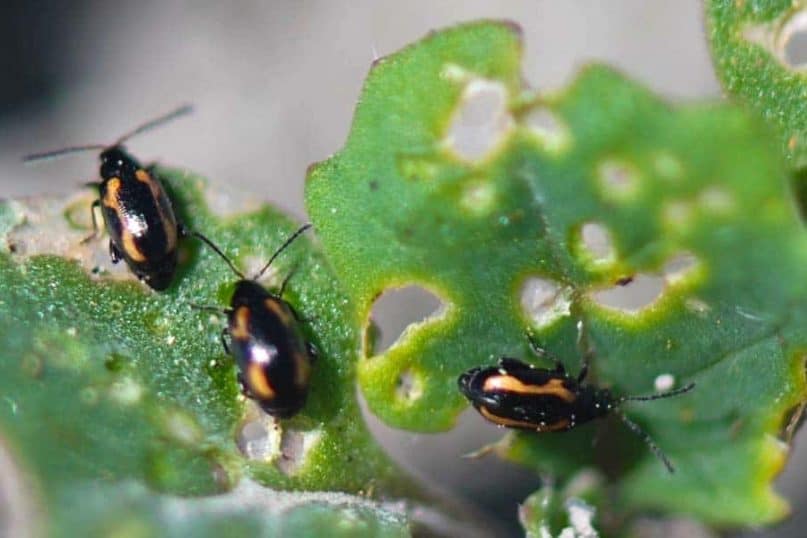 Marigolds are well-known for their distinctive odor, which many insects, as well as deer, despise. A thick bed of marigolds around a food garden would help keep pests at bay. You can also use neem oil, vinegar sprays, and various other safe chemical remedies to treat or prevent insect infestations.