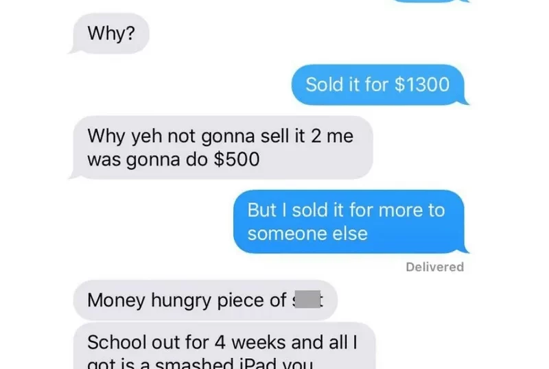 They definitely aren't a friend now after calling him money hungry just for not selling something for a ridiculously low price. How is it the friend's fault his iPad is smashed up?