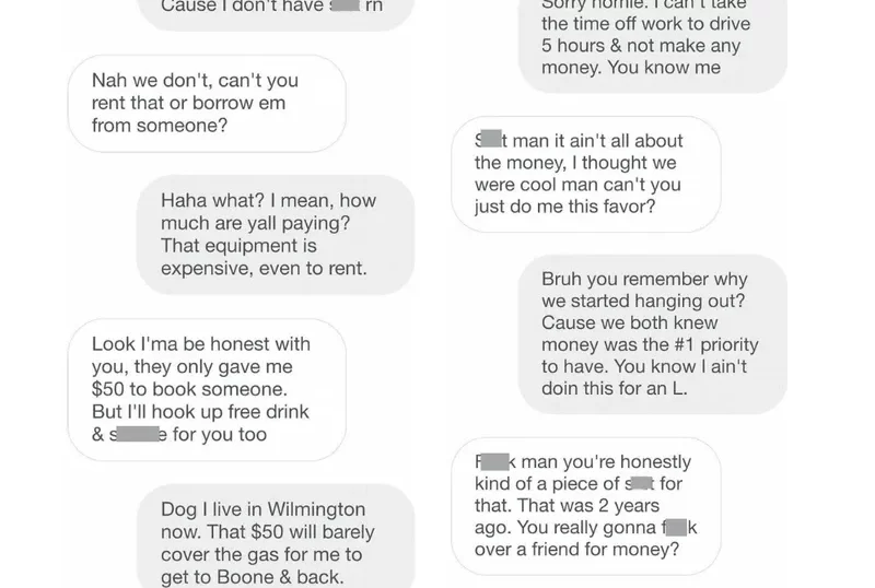 This guy and all of his frat bros were throwing a party and decided to look for a local rapper, so he reached out to an old friend he hadn't seen in ages. It seemed like a nice gesture until the old friend realized the pay was crap.