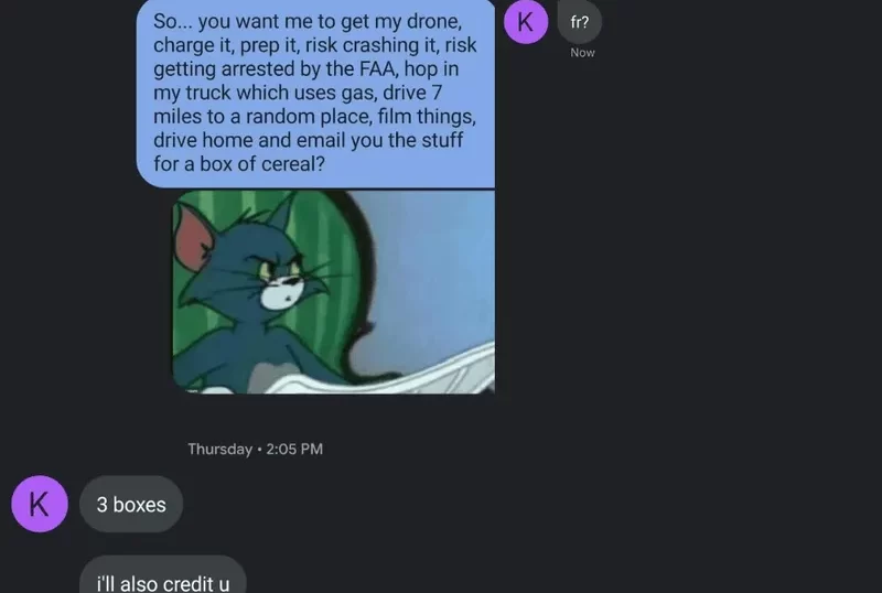 People who are influencers, or at least trying to be, seem to think that they're always entitled to free goods and services as long as they credit or tag that person. That's not how the world works.