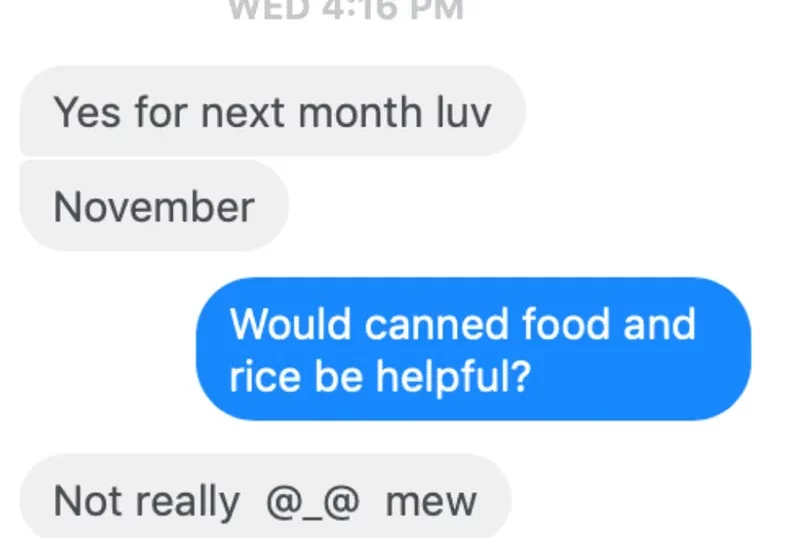 This person posted on social media asking for help with food. When you don't have enough money to spend on food, you've got to do what you've got to do, even if it means eating lots of rice and beans that someone donated to you.