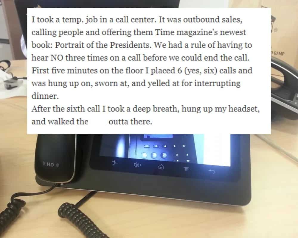 In this case, the question is whether it's right to wait for an employee to protest three times before addressing their concerns. Many, including this person, would argue that it's not. It only took six calls for this individual to realize that the job wasn't suitable for them, prompting their decision to leave.