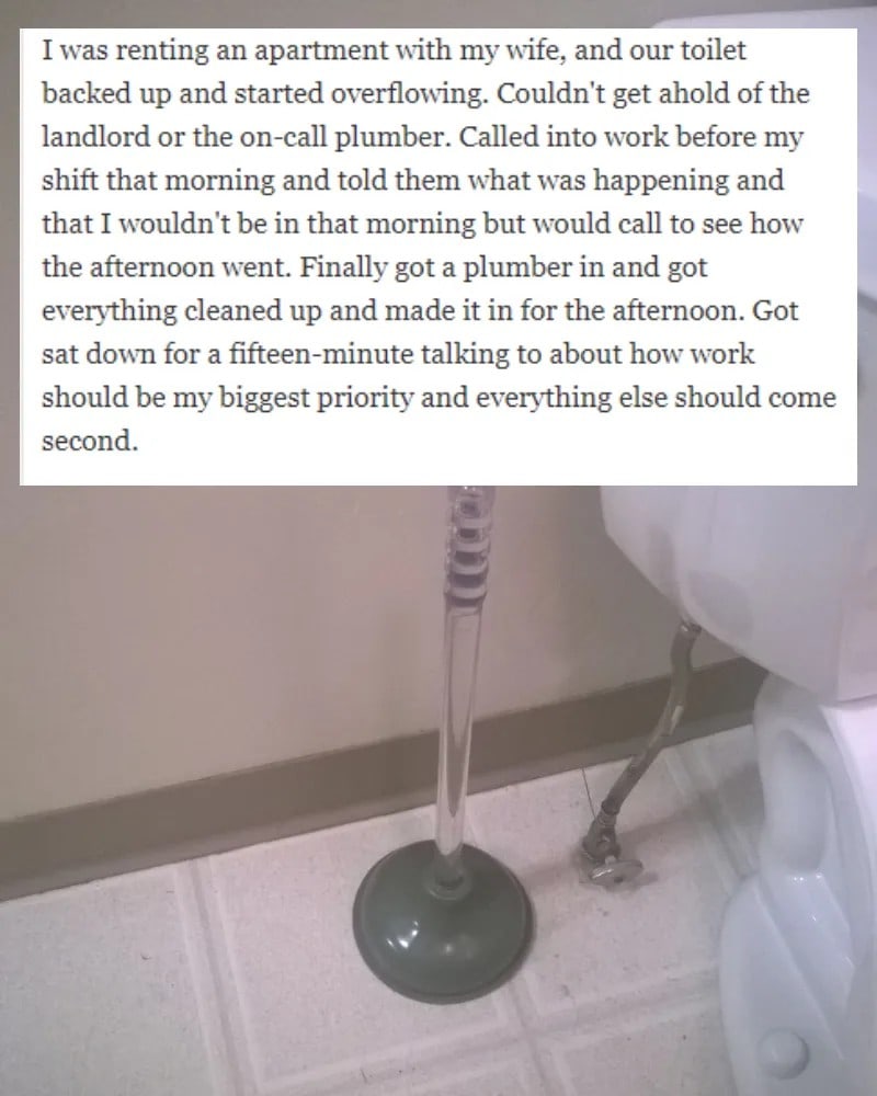 However, their supervisors didn't seem to appreciate the employee's efforts, expecting an unreasonable level of commitment. Such expectations may not align with the reality of unforeseen emergencies.