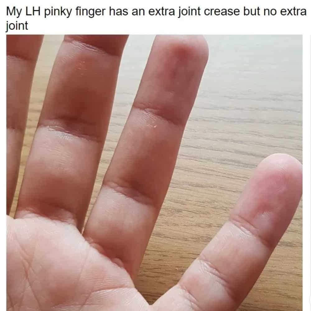 This unusual feature might go unnoticed unless someone points it out, indicating the person's pride in highlighting this atypical characteristic and drawing attention to it. Their willingness to showcase it suggests a desire to embrace their individuality and perhaps spark interesting conversations about their unique finger anatomy.