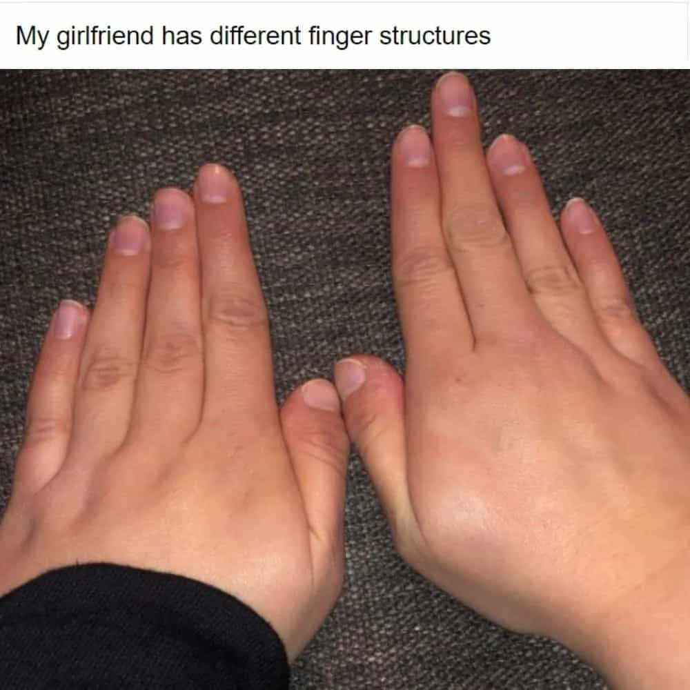 Human bodies are often characterized by symmetry, where one side of the body closely mirrors the other. For example, one hand typically resembles the other in terms of structure and appearance. However, this person seems to defy this norm, as their hands appear strikingly dissimilar, almost as if they belong to two different individuals.