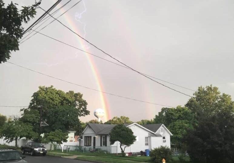 Summer storms often create some of the most incredible skies, but this moment feels almost cinematic. Someone glanced outside during a passing storm and spotted a vibrant double rainbow stretching over their neighborhood. The second arc is faint but clearly visible to the right of the first.