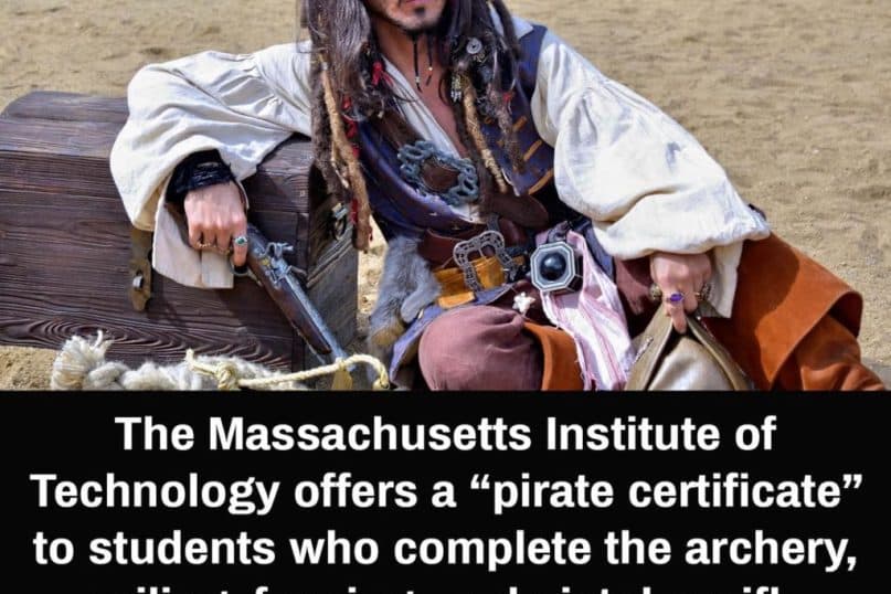 But at MIT, there’s a quirky little offering: a “pirate certificate.” Students can earn it by taking a combination of archery, sailing, fencing, and pistol or rifle classes. It’s not going to turn you into Jack Sparrow, but it’s a fun, nerdy way of honoring that childhood fantasy in a very MIT way.