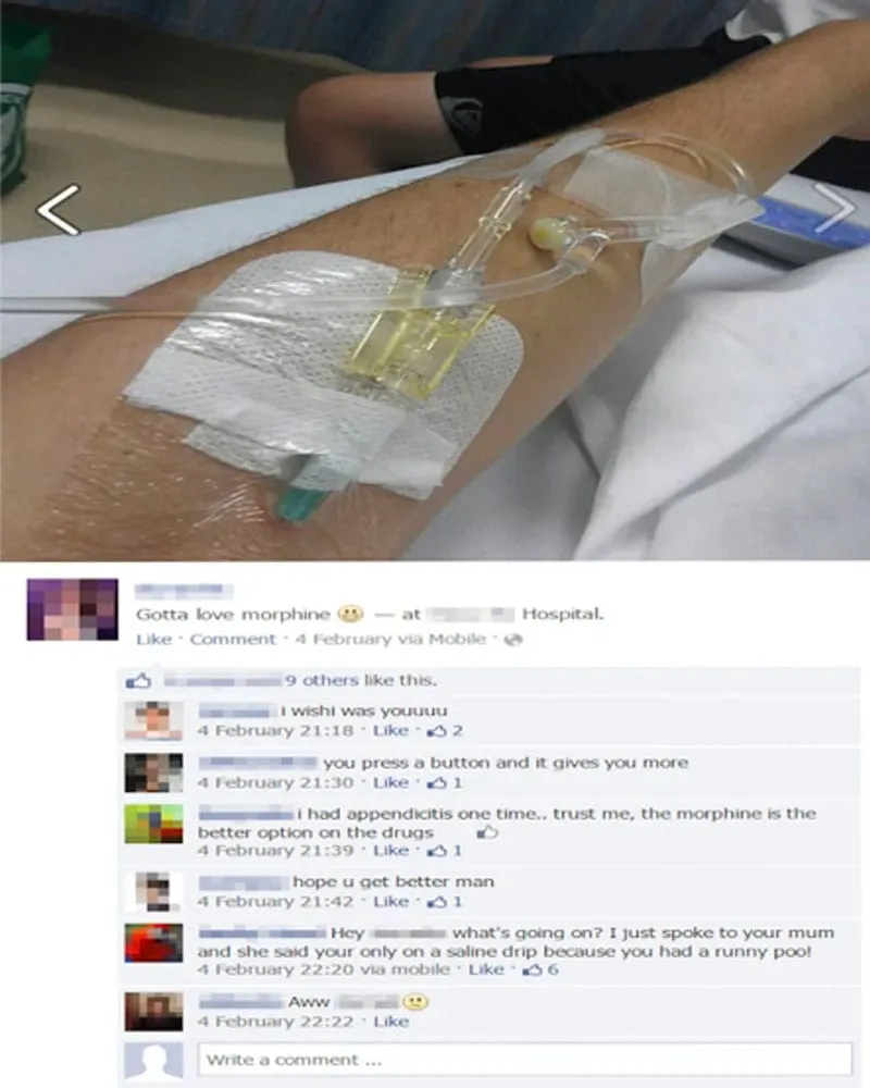This guy was fishing for pity but ended up needing more than just sympathy—probably a stronger painkiller than morphine—after being publicly exposed. He never considered that his friends might visit or contact his family to confirm his story. In the end, he made a fool of himself.