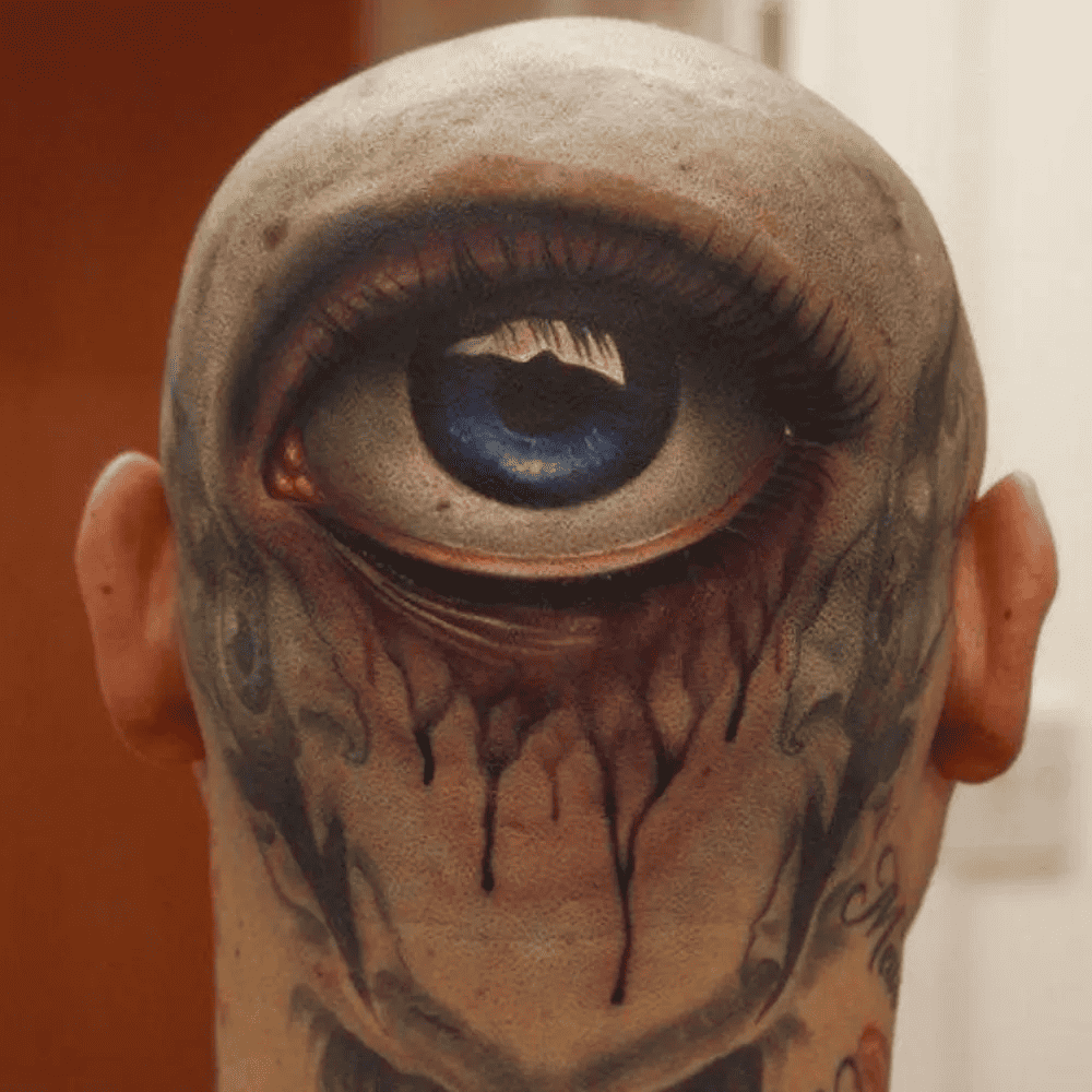 Reminiscent of the age-old adage, "I've got eyes in the back of my head," this gentleman can confidently assert that he possesses such an ability without a hint of deceit. Indeed, he sees all, and his watchful eye would surely deter any naughty behavior behind his back. Although the realism of the eye might make some feel as though they are under constant surveillance, it reinforces the tattoo's captivating allure.