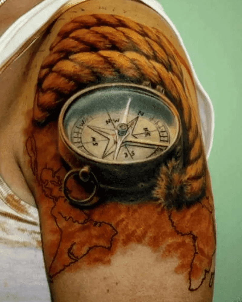With a compass tattooed on their body, this person is unlikely ever to lose their way. Moreover, the hyper-realistic appearance of the tattoo gives the impression that this individual possesses an innate sense of direction and is capable of navigating through the wilderness with ease.