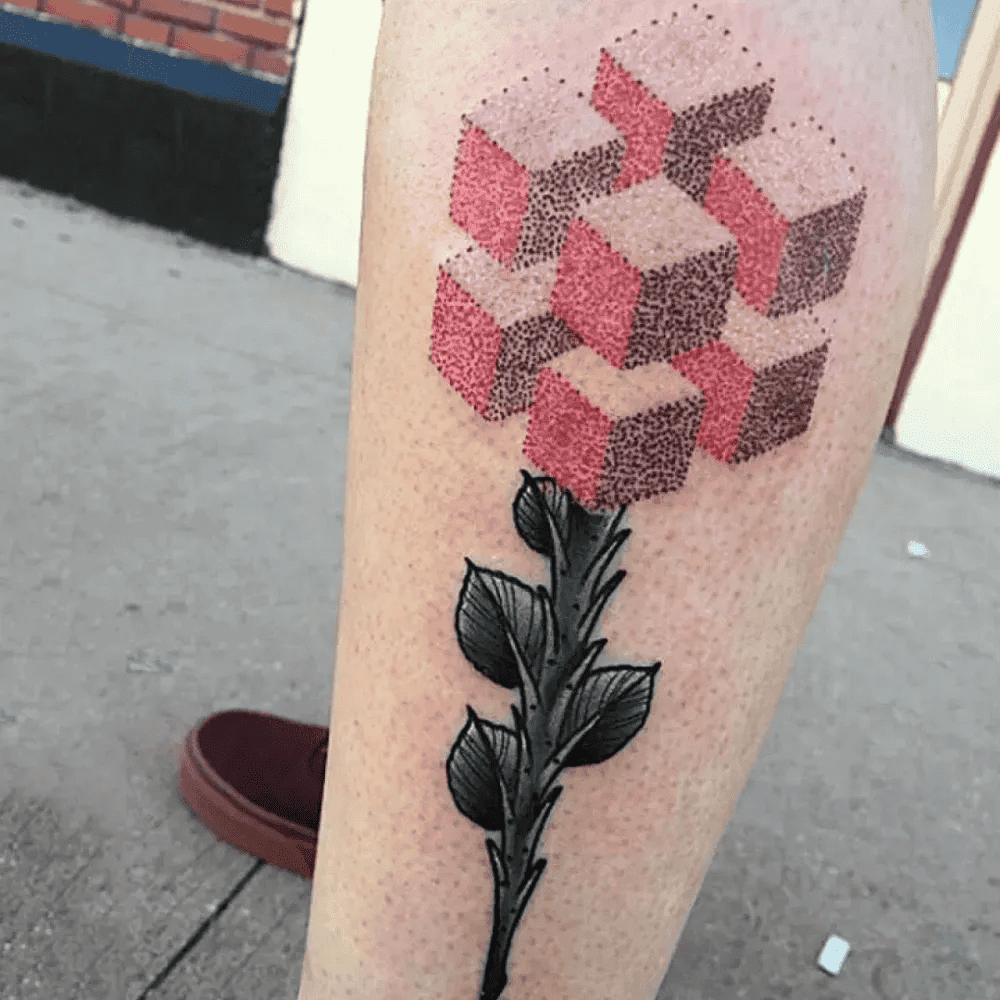 This tattoo evokes the imagery of a bouquet plucked directly from the Matrix, complete with a touch of glitchiness. It's as if the digital flower code was left incomplete, resulting in a bouquet with a distinctly cubist appearance.